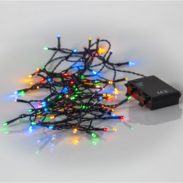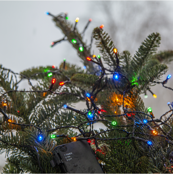 Lampki choinkowe LED 80 diod 5,6m na baterie z timerem Multikolor IP44