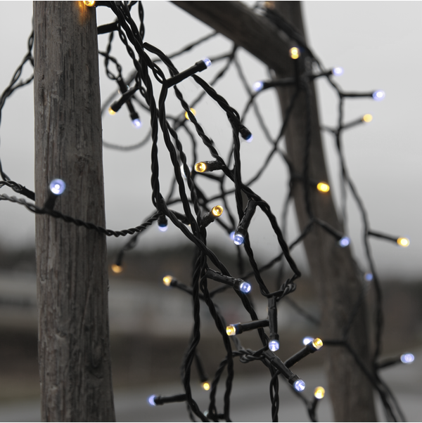 Wprowadź wyjątkowy kontrast światła do swoich dekoracji dzięki wysokiej jakości lampkom LED łączącym barwę zimną i ciepłą. Ten unikalny miks kolorów sprawia, że łańcuch świetlny idealnie nadaje się do dekoracji świątecznych, ale również całorocznych instalacji w ogrodzie, na balkonie lub wewnątrz domu. Odporność na warunki atmosferyczne (IP44) sprawia, że lampki świetnie sprawdzą się zarówno zimą, jak i latem.