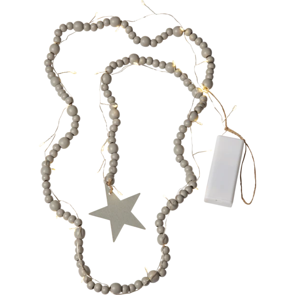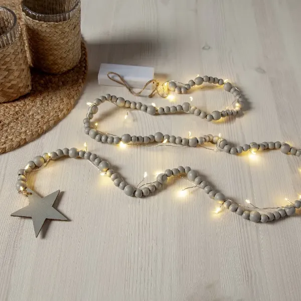 Łańcuch dekoracyjny drewniane koraliki i gwiazdka LED BEADY na baterie