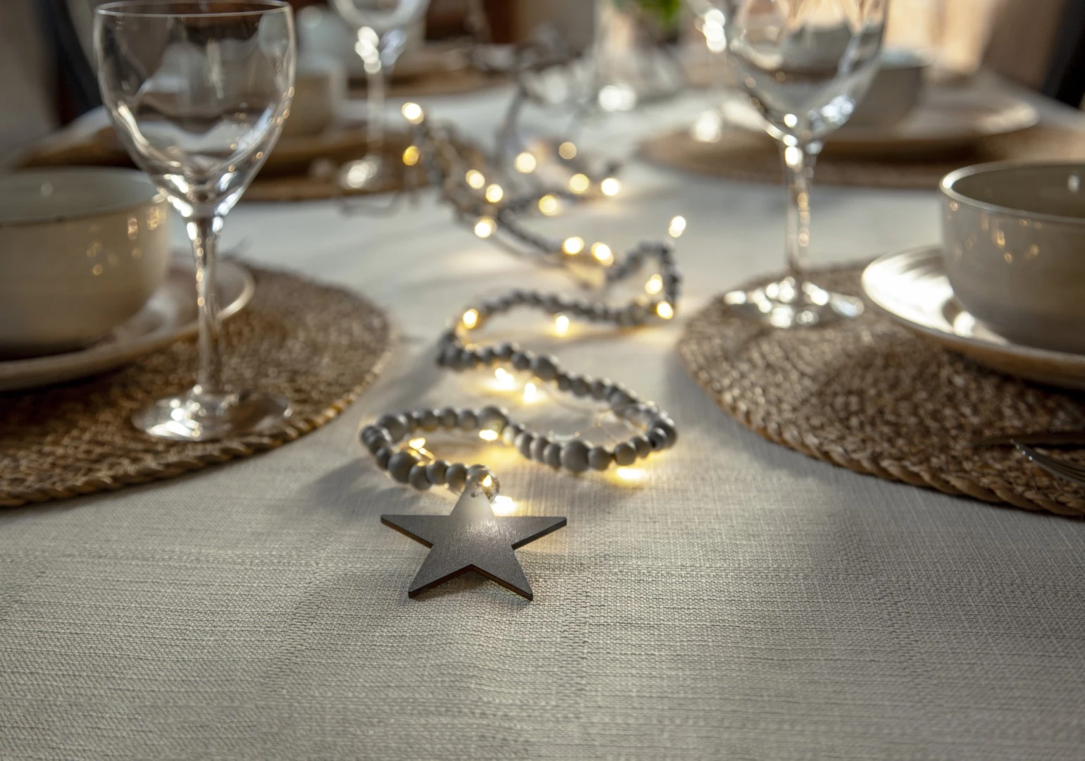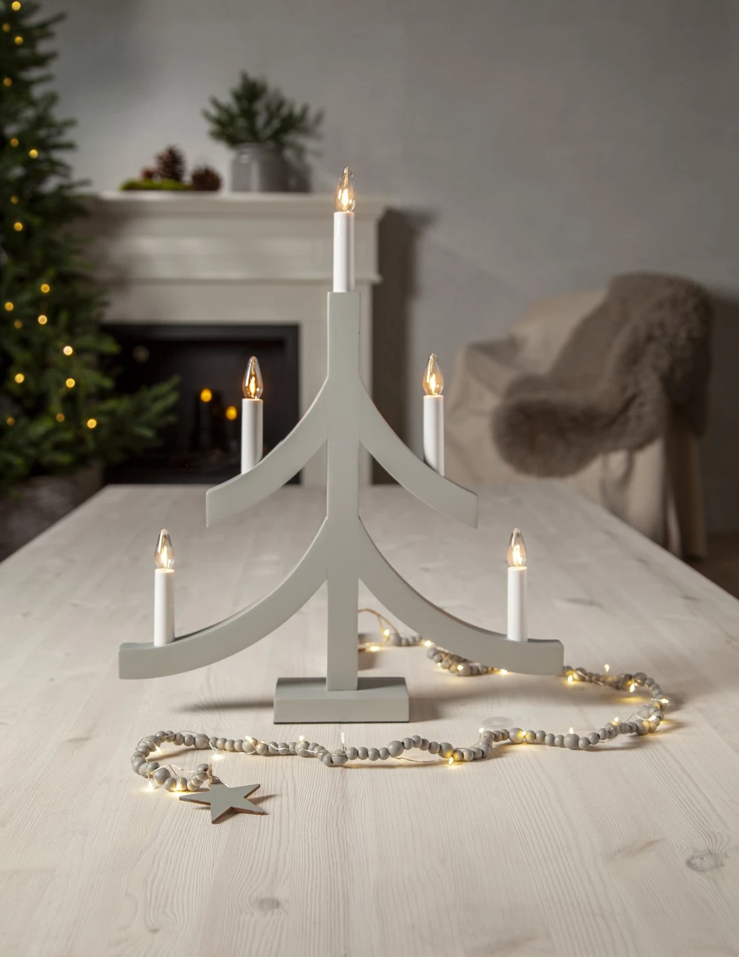 Subtelna i efektowna dekoracja - łańcuch świetlny składa się z ciepłych, białych diod LED, które delikatnie rozświetlają drewniane elementy, nadając wnętrzu wyjątkowego charakteru. Doskonale sprawdzi się jako ozdoba na stole, komodzie czy parapecie, wprowadzając ciepły i nastrojowy klimat.