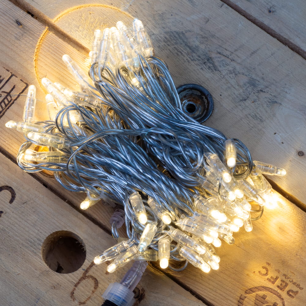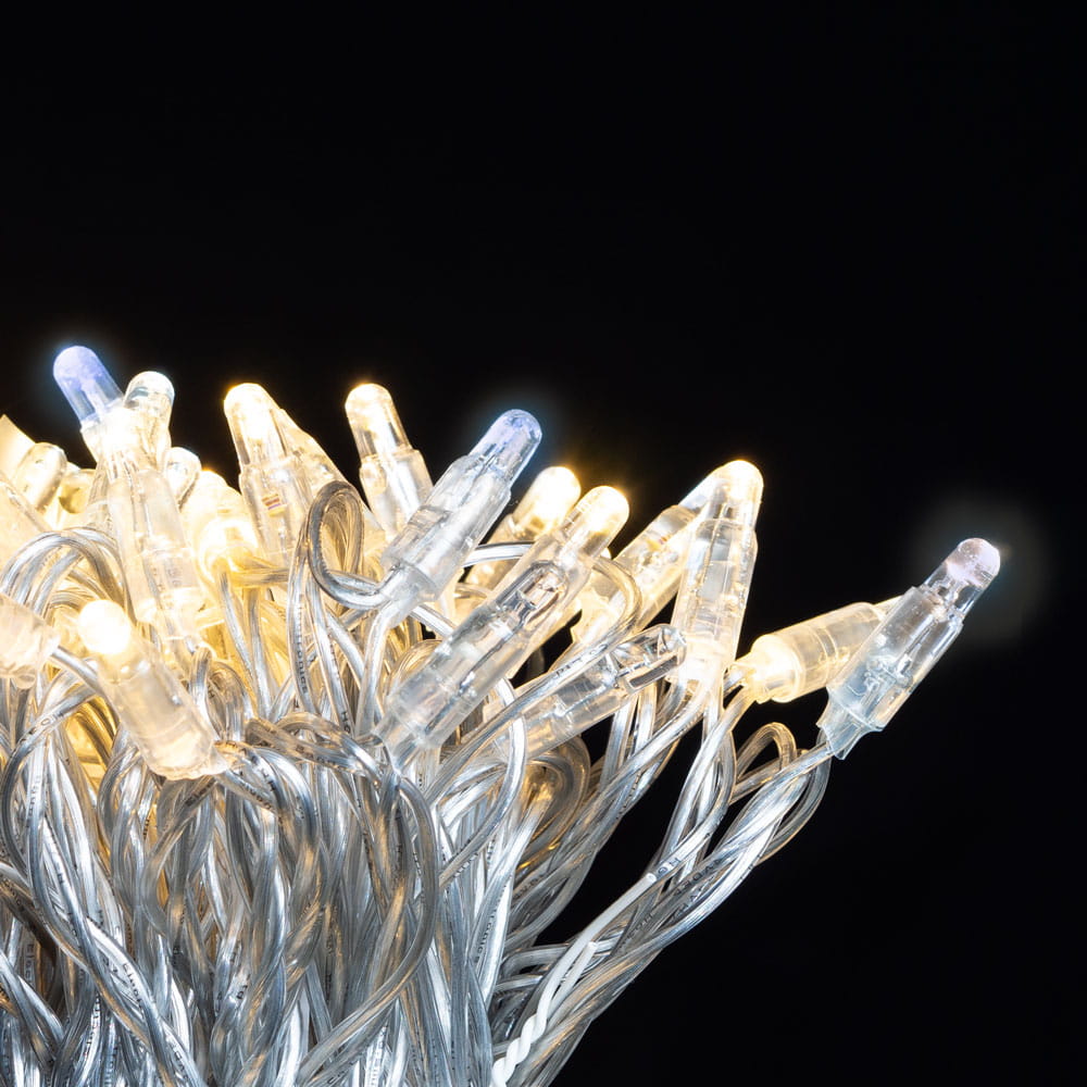 Profesjonalne lampki choinkowe LED 12m Białe Ciepłe z FLASH 230V IP44
