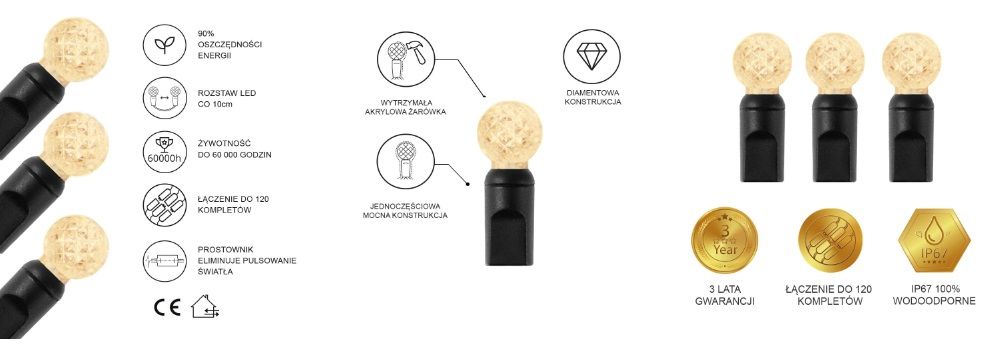 | DŁUGOŚĆ LAMPEK CHOINKOWYCH | 2 m - 5,8 m |