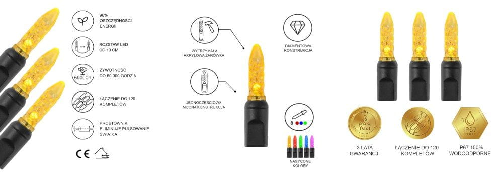 ➡️ W przypadku łączenia kilku lampek w jedną linię świetlną, wystarczy zakupić jeden kabel zasilający do całego systemu.