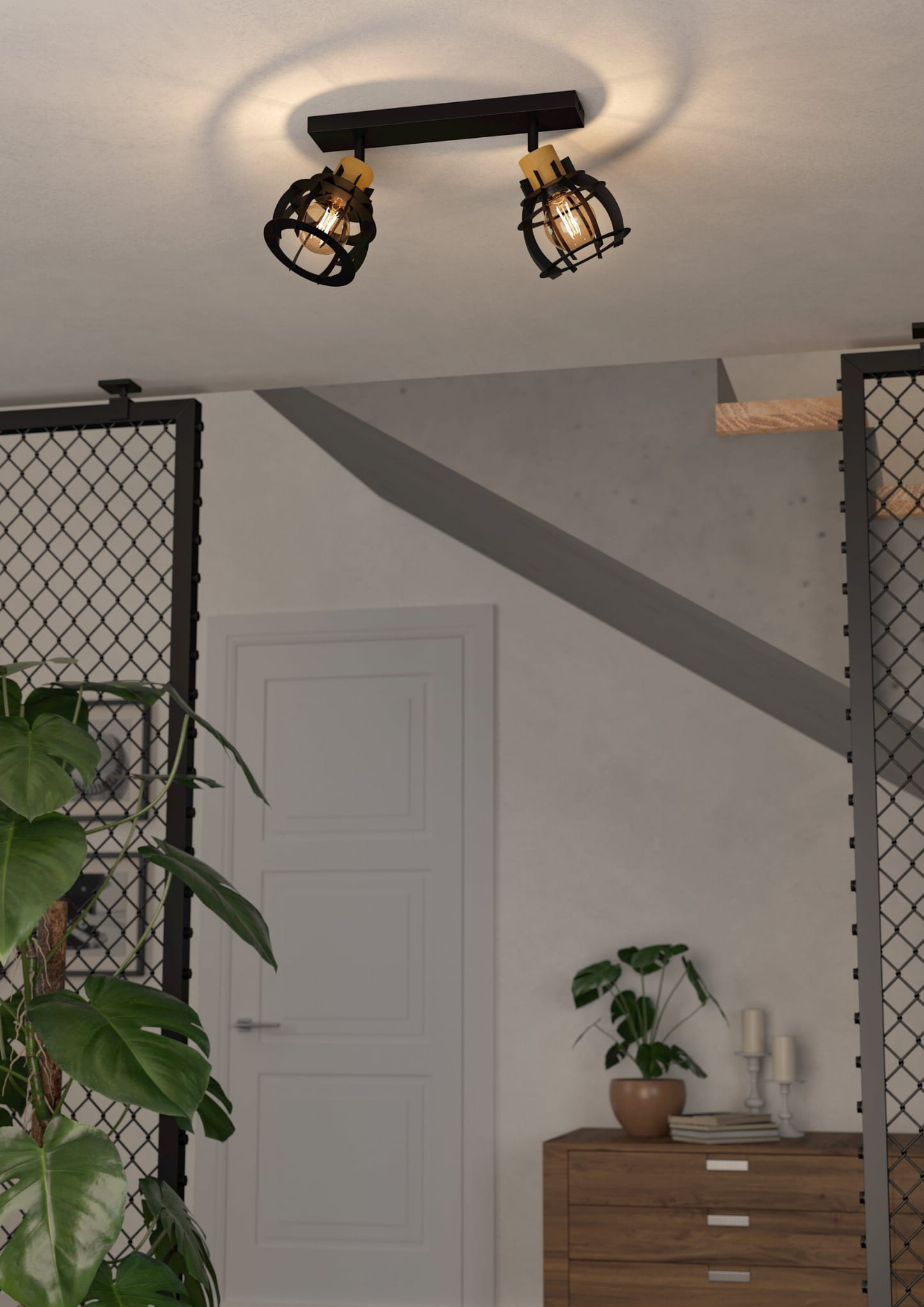 STILLINGTON 1 to reflektor 2-punktowy, który łączy surowy wygląd czarnego metalu z naturalnym drewnem. Minimalistyczna forma z funkcją regulacji kierunku światła sprawdzi się zarówno jako oświetlenie akcentujące, jak i główne.