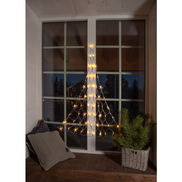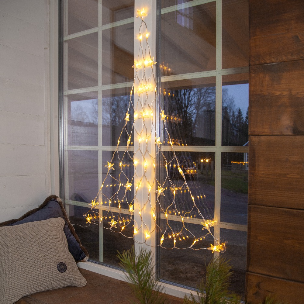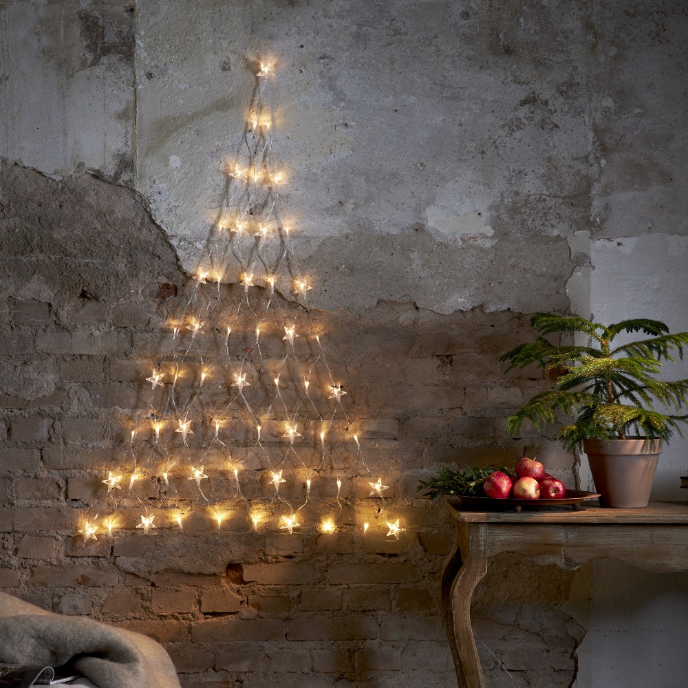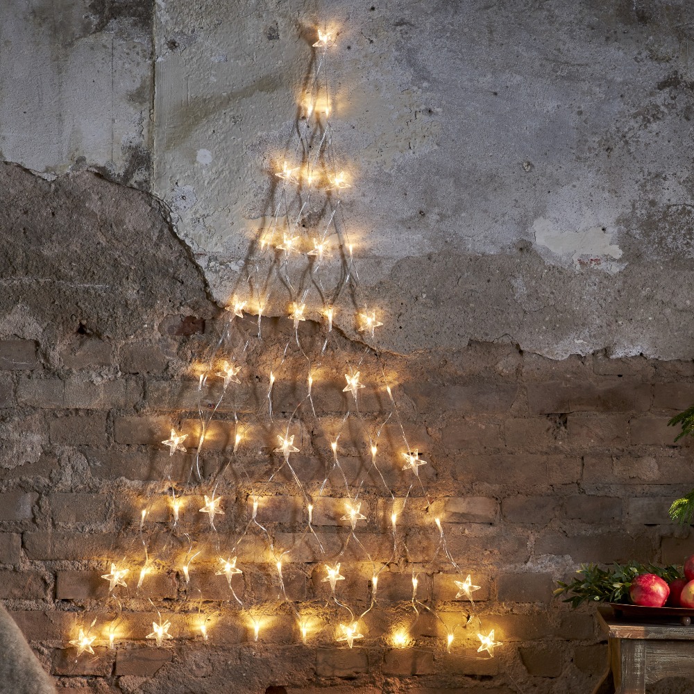 Stwórz świąteczny klimat w nowoczesnym wydaniu dzięki dekoracyjnej siatce LED w kształcie choinki – idealnej do zawieszenia na ścianie w salonie, przedpokoju lub jadalni. Delikatne punkty świetlne rozmieszczone na przejrzystym przewodzie tworzą efektowną, a jednocześnie subtelną iluminację, która pięknie rozświetla przestrzeń. 55 diod LED w ciepłej barwie w połączeniu z 23 akrylowymi gwiazdkami daje wrażenie trójwymiarowej, lekkiej dekoracji, która wprowadza do wnętrza przytulność i magię świąt. To stylowa alternatywa dla tradycyjnego drzewka – elegancka, nowoczesna i pełna uroku.