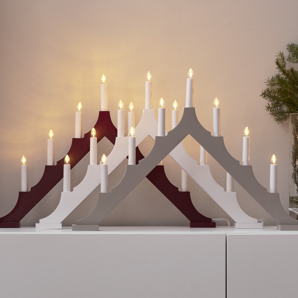 Biały drewniany świecznik to elegancka dekoracja, która wniesie do wnętrza subtelny blask i świąteczną atmosferę. Jego klasyczna forma w jasnej kolorystyce pasuje zarówno do tradycyjnych, jak i nowoczesnych aranżacji. Siedem świeczek rozmieszczonych w harmonijnym układzie rozświetla przestrzeń ciepłym światłem, dodając pomieszczeniu przytulności i uroku. Wykonany z drewna z certyfikatem FSC®, łączy estetykę z troską o środowisko.