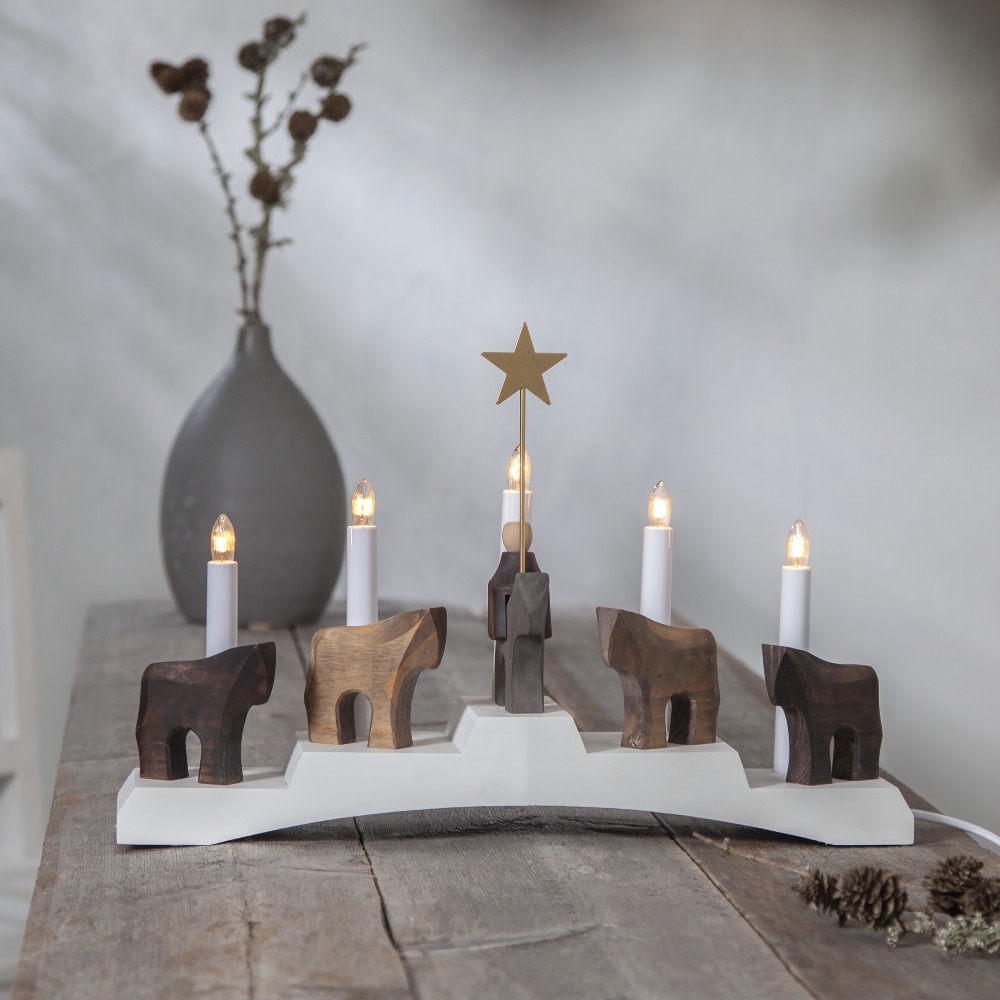 Świecznik adwentowy elektryczny drewniany 5-ramienny Koniki Dala STAFFANS FÅLAR