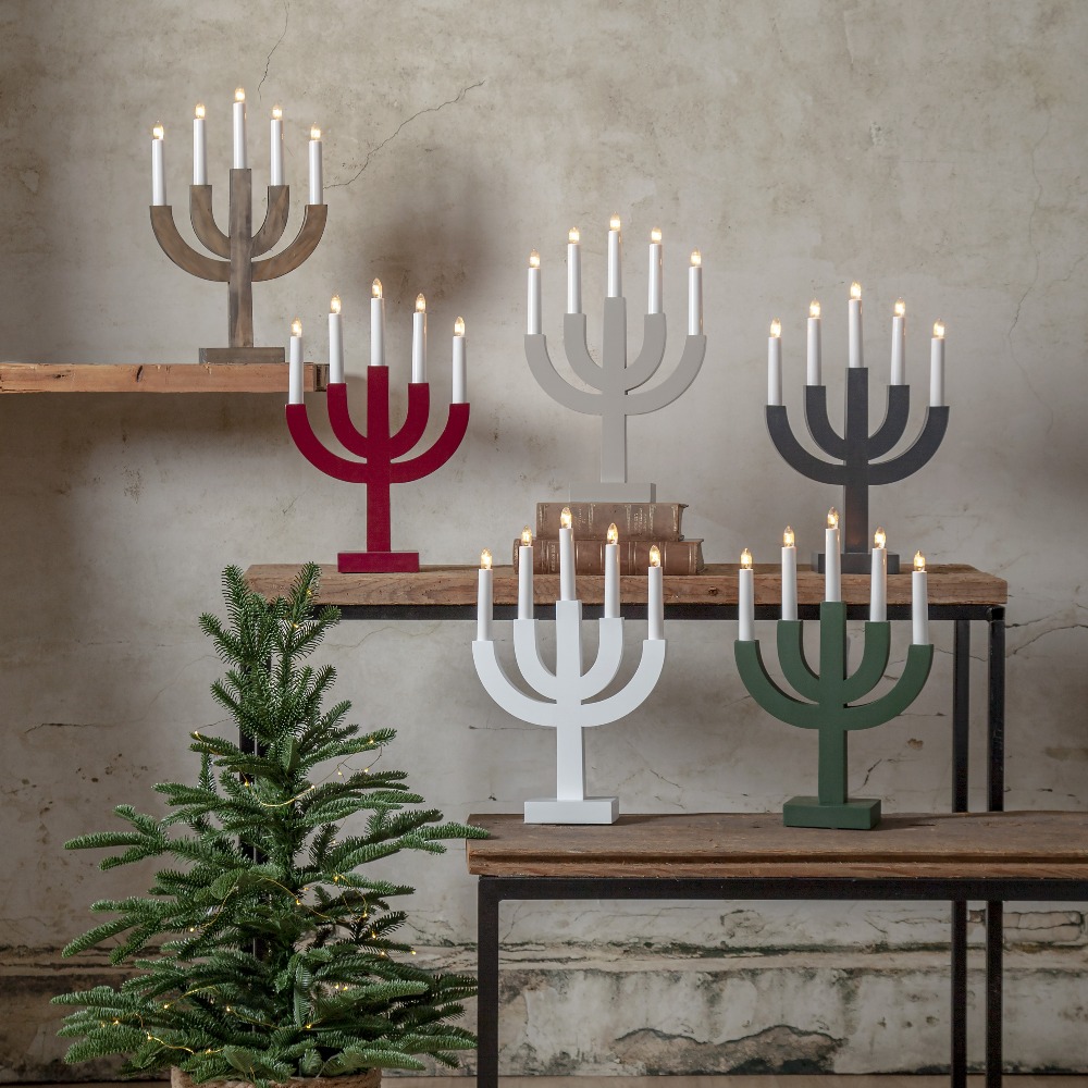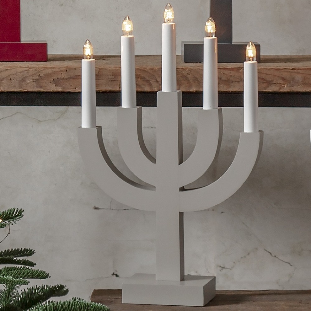 Beżowy, drewniany świecznik z pięcioma ramionami to elegancka dekoracja, która wprowadza do wnętrza ciepło i subtelny, świąteczny nastrój. Jego neutralna barwa harmonijnie komponuje się z różnymi aranżacjami, dodając im przytulności i elegancji.