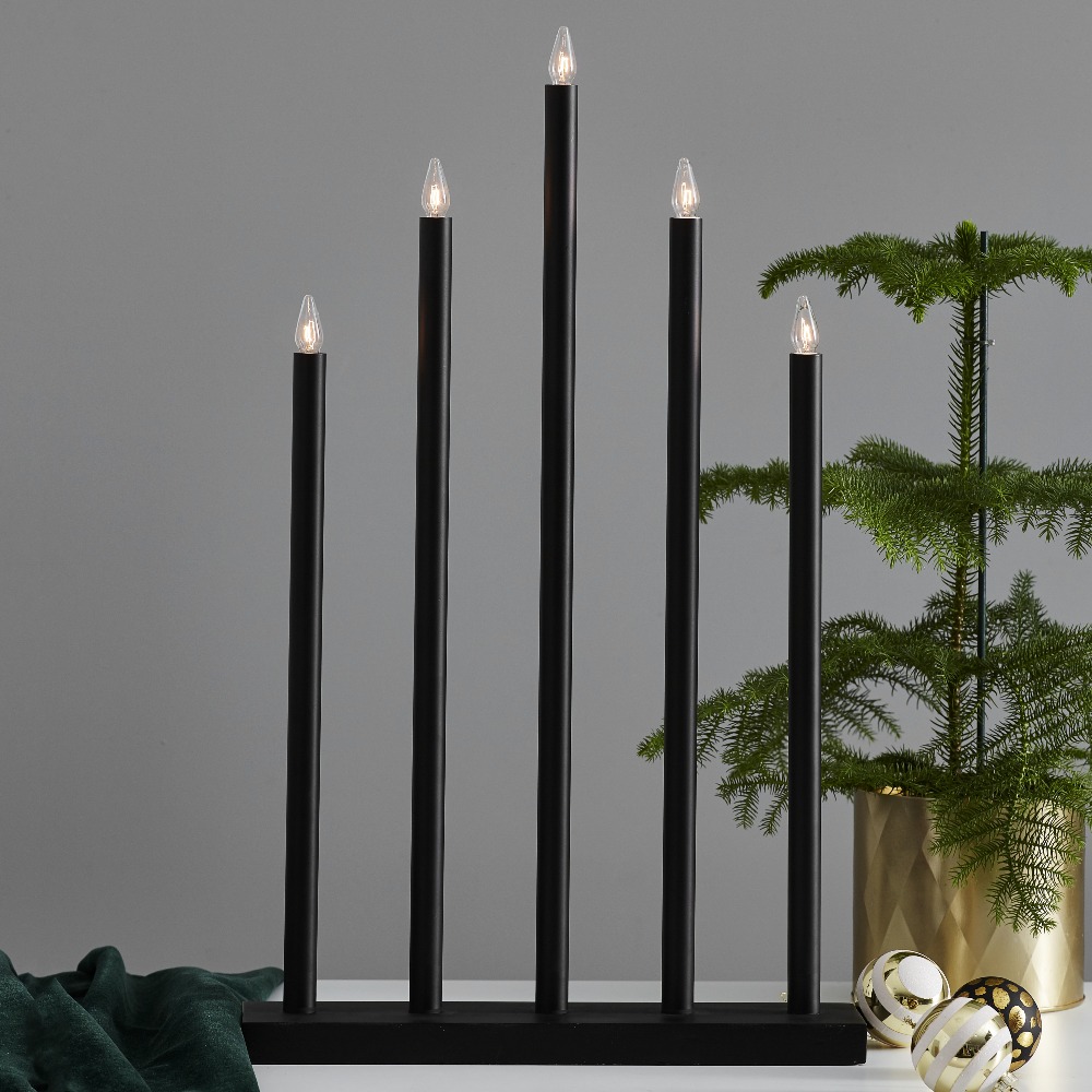 Drewniany świecznik z pięcioma metalowymi rurkami w kolorze czarnym to stylowa dekoracja, która wnosi do wnętrza elegancję i przytulny, świąteczny klimat. Smukłe świece w stopniowanej wysokości tworzą prostą, ale efektowną kompozycję, która doskonale komponuje się z nowoczesnymi i klasycznymi aranżacjami. Głęboka czerń nadaje świecznikowi wyrazistego charakteru i pięknie kontrastuje z jasnym otoczeniem.