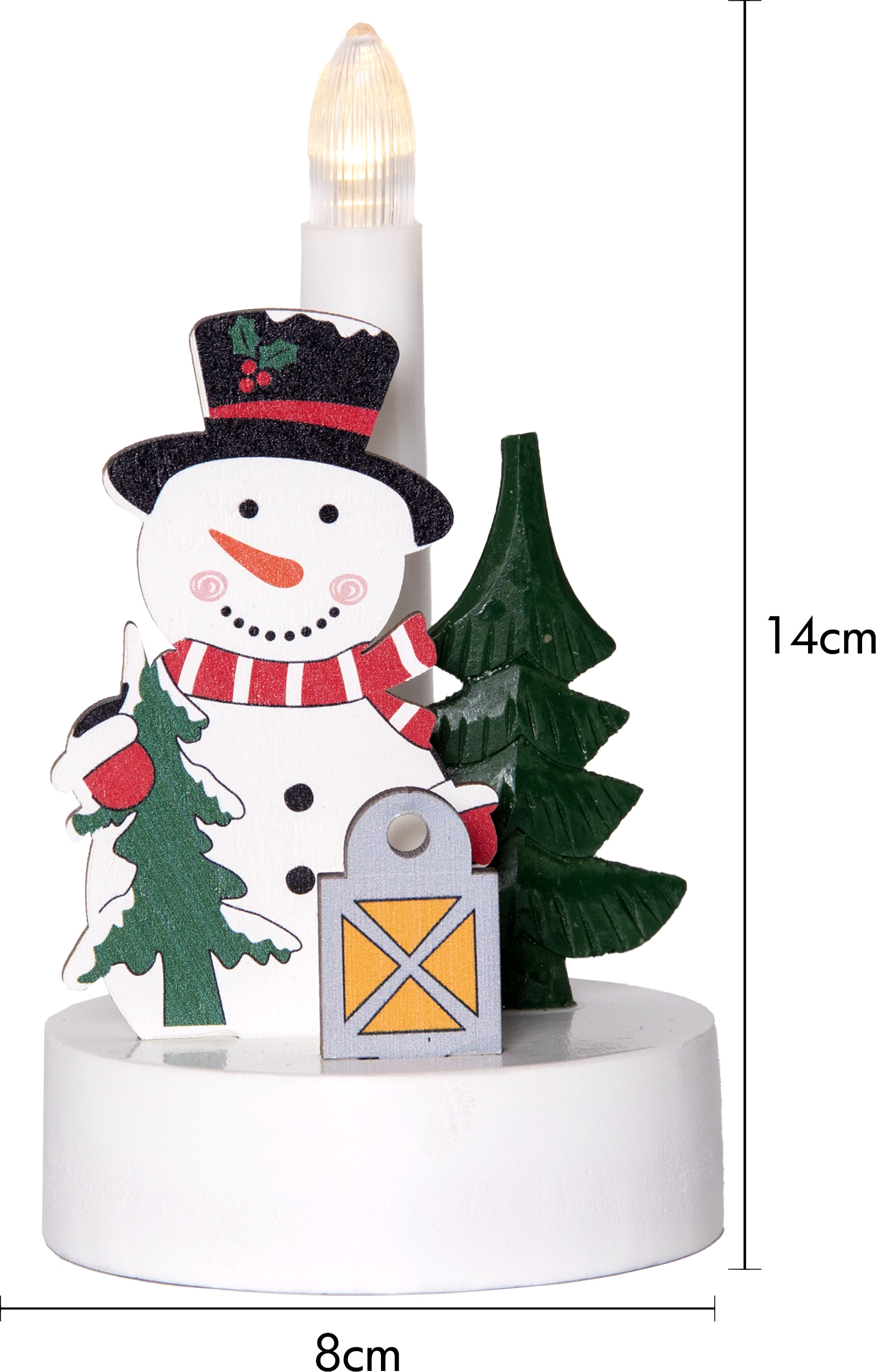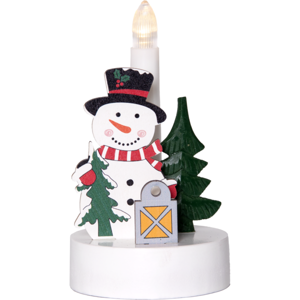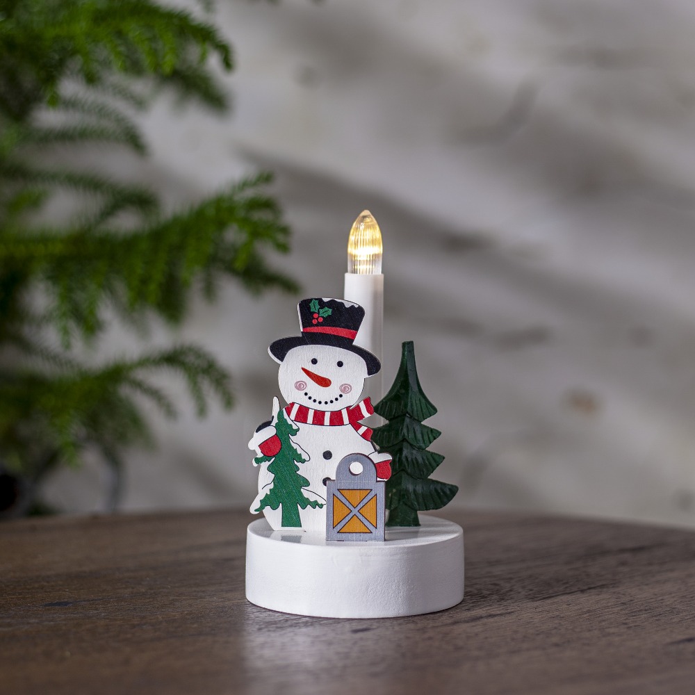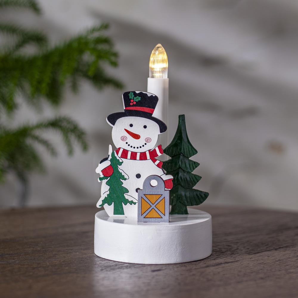 Świąteczny motyw – figurka wesołego bałwanka z choinką i latarenką wprowadza radosny klimat świąt do każdego wnętrza.