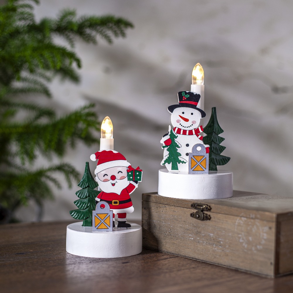 Drewniany świecznik z uroczą figurką bałwanka to radosna dekoracja, która wprowadza do wnętrza świąteczną atmosferę i dziecięcą beztroskę. Kolorowe detale – kapelusz, szalik, latarenka oraz choinka – sprawiają, że świecznik staje się pełnym uroku akcentem na parapecie, półce czy świątecznym stole. Dzięki zasilaniu bateryjnemu można go ustawić w dowolnym miejscu, bez potrzeby korzystania z gniazdka, a wbudowany timer zapewnia wygodę użytkowania.