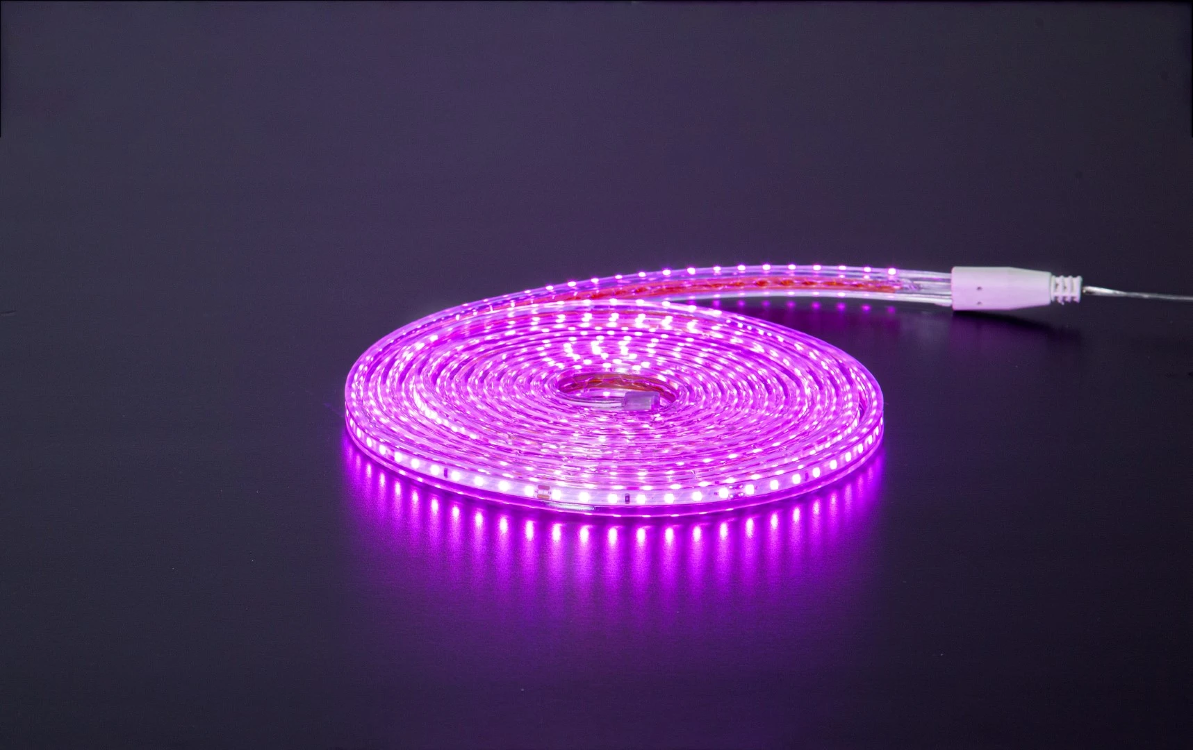 Różowy wąż LED zwinięty w krąg, widok z góry, wyłączony na przezroczystym podłożu.