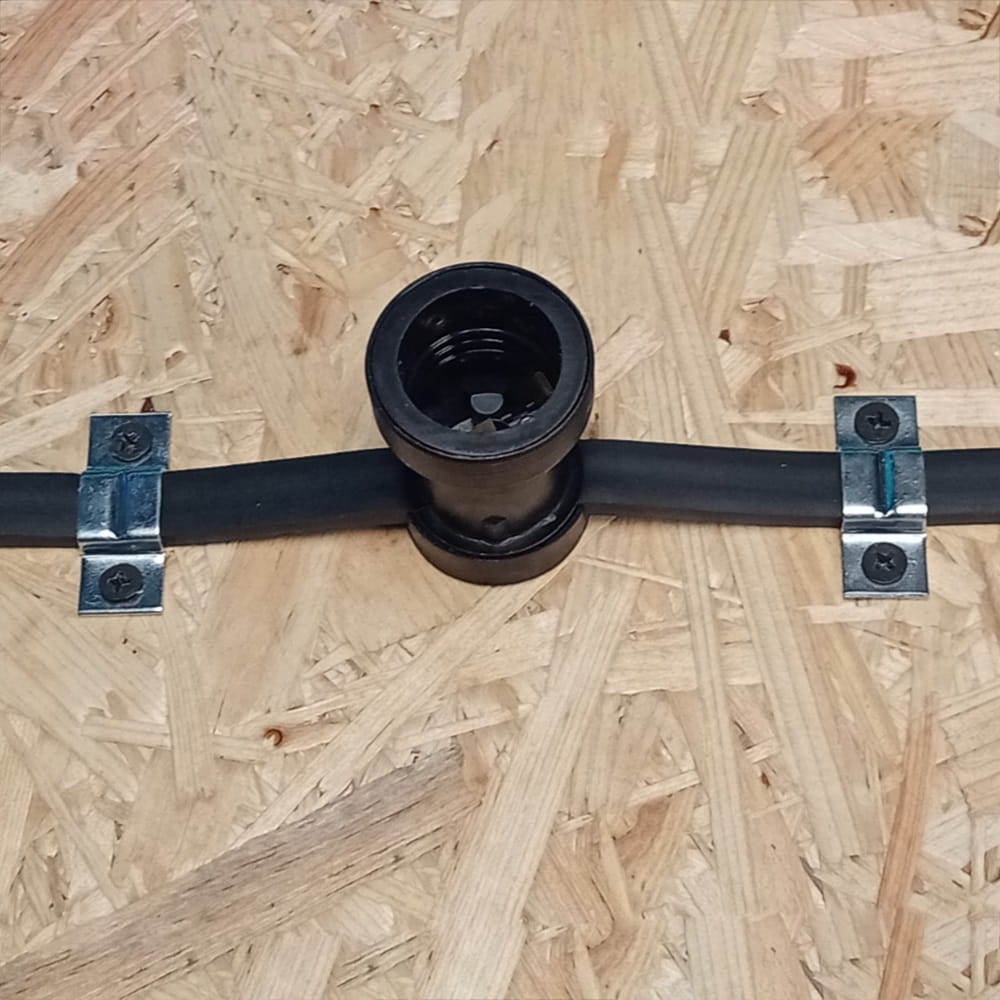 Uniwersalne zastosowanie w aranżacjach świetlnych - uchwyt idealnie nadaje się do montażu girland na elewacjach, pergolach, belkach, ogrodzeniach czy konstrukcjach drewnianych i metalowych. To praktyczne rozwiązanie dla instalacji ogrodowych, tarasowych, eventowych oraz dekoracji komercyjnych, gdzie liczy się estetyka i porządek prowadzenia przewodów.