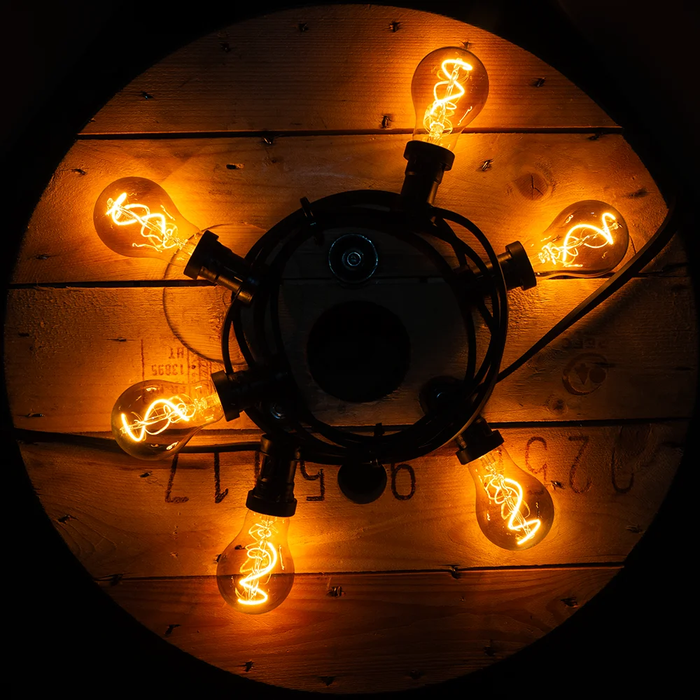 Bardzo ciepła barwa światła 1800K – efekt vintage. Światło o temperaturze 1800K emituje miękki, bursztynowy blask zbliżony do światła świec i żarówek wolframowych. Tworzy spokojną, relaksującą atmosferę idealną do ogródków restauracyjnych, eventów plenerowych, tarasów, altan oraz stref wypoczynku.