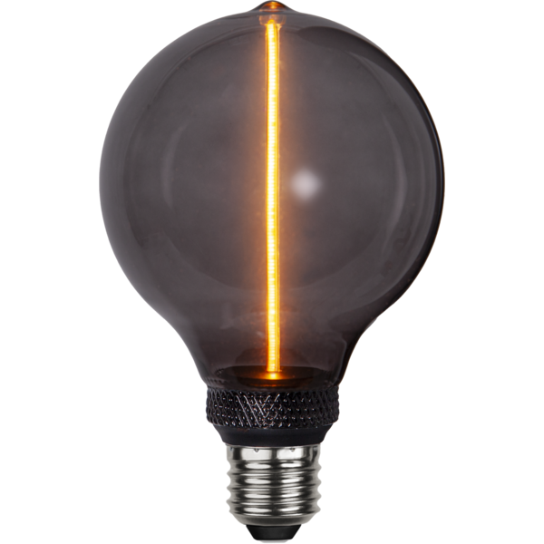 Żarówka LED E27 G95 DECOLED ONE o mocy 2W to dekoracyjne źródło światła o dużej, kulistej formie i bardzo ciepłej barwie 1800K. Subtelne światło przypominające blask świecy tworzy przyjemny, nastrojowy klimat we wnętrzu. Dzięki funkcji trzystopniowej regulacji jasności można wygodnie dopasować intensywność oświetlenia do potrzeb, korzystając ze standardowego włącznika światła.