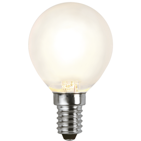 Forma P45 – niewielka, kulista bańka idealnie sprawdza się w kompaktowych oprawach, kinkietach i lampkach dekoracyjnych.
