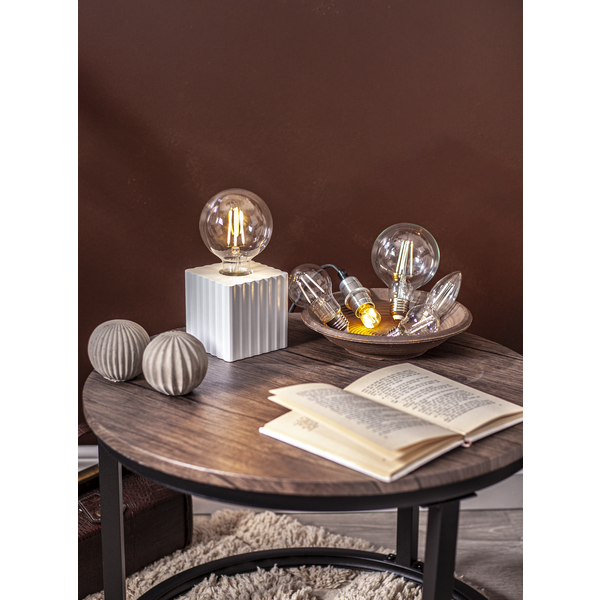 Biały filament w transparentnym szkle – estetyczne połączenie klasycznej formy z nowoczesnym żarnikiem LED zapewnia stylowy wygląd i równomierne rozproszenie światła.