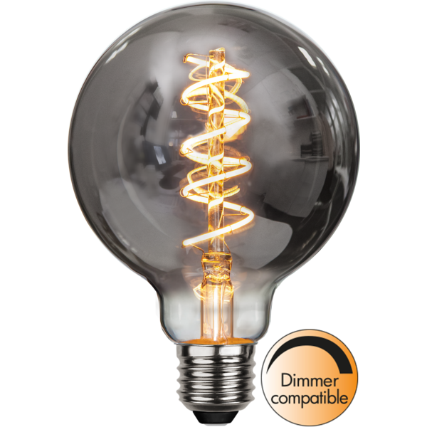 Dekoracyjny design w stylu vintage - duża bańka G95 z dymionego szkła oraz efektowny, spiralny filament sprawiają, że żarówka pełni funkcję nie tylko źródła światła, ale także elementu dekoracyjnego. Doskonale prezentuje się w girlandach, oprawach otwartych i lampach ekspozycyjnych, podkreślając charakter przestrzeni.