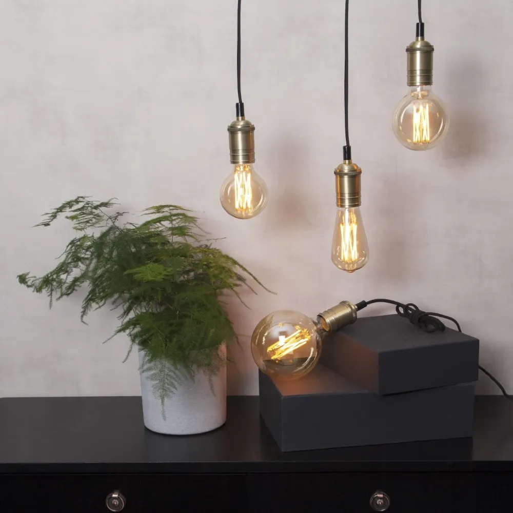 Złote szkło – elegancka złota powłoka nadaje żarówce stylowy wygląd i dodatkowo ociepla emitowane światło, tworząc nastrojowy efekt w pomieszczeniu.