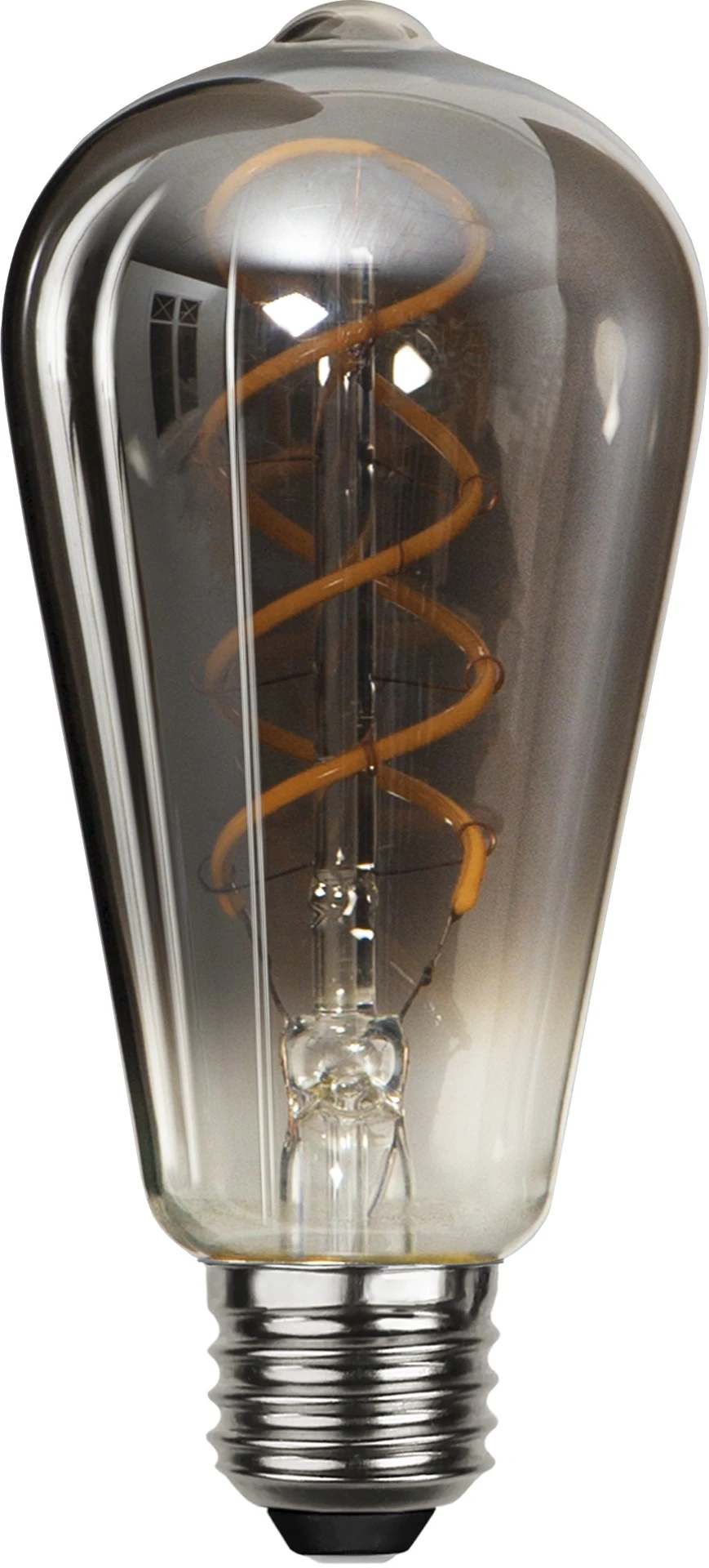 Dymione szkło – ciemna, przydymiona powierzchnia nadaje żarówce elegancki wygląd i tworzy subtelny, dekoracyjny efekt świetlny.