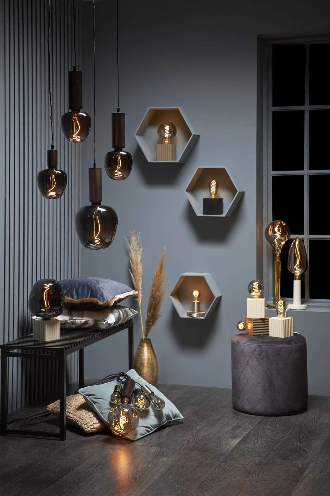 Forma ST64 – wydłużona bańka inspirowana klasycznymi żarówkami Edison doskonale prezentuje się w lampach wiszących i oprawach z odsłoniętym źródłem światła.