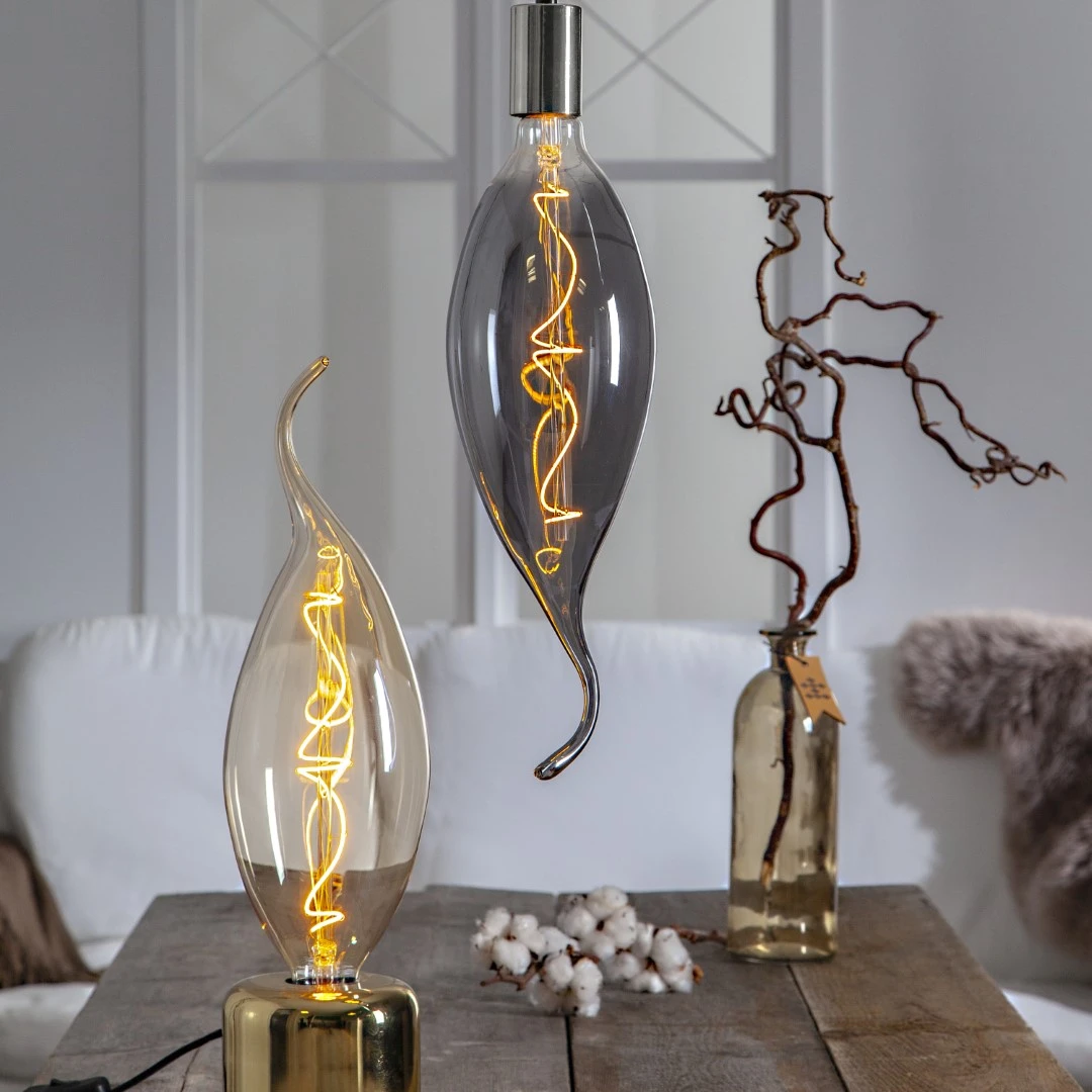 Styl industrial vintage – transparentna konstrukcja z dekoracyjnym żarnikiem filament nawiązuje do klasycznych żarówek, nadając przestrzeni wyjątkowego klimatu.