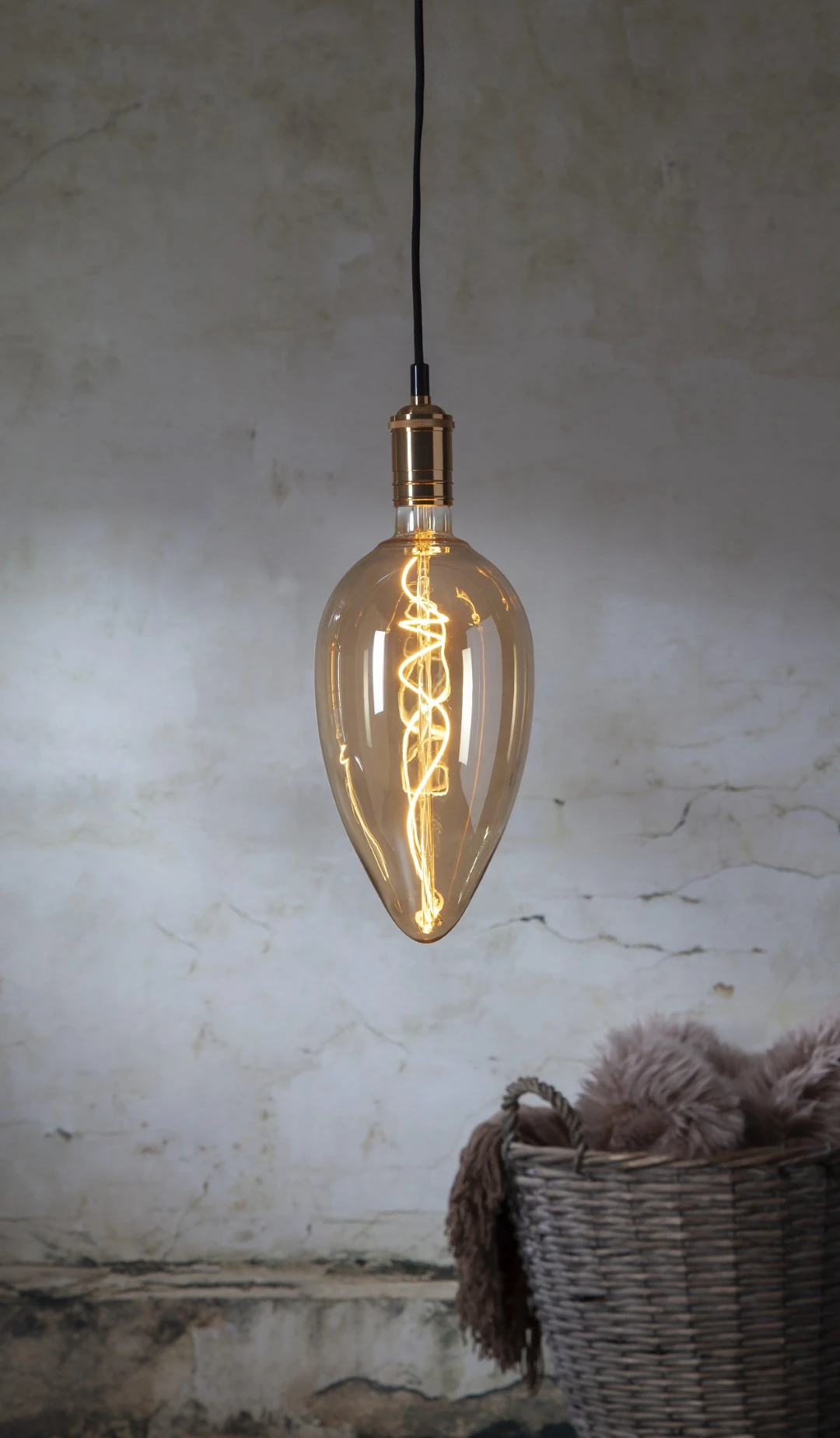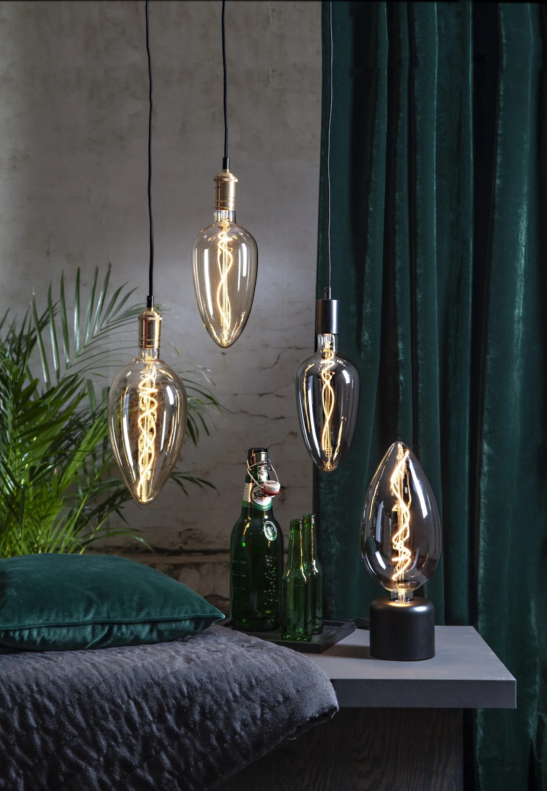 Forma C150 – wydłużona, dekoracyjna bańka przyciąga uwagę i stanowi wyrazisty element aranżacji w lampach wiszących oraz nowoczesnych oprawach oświetleniowych.