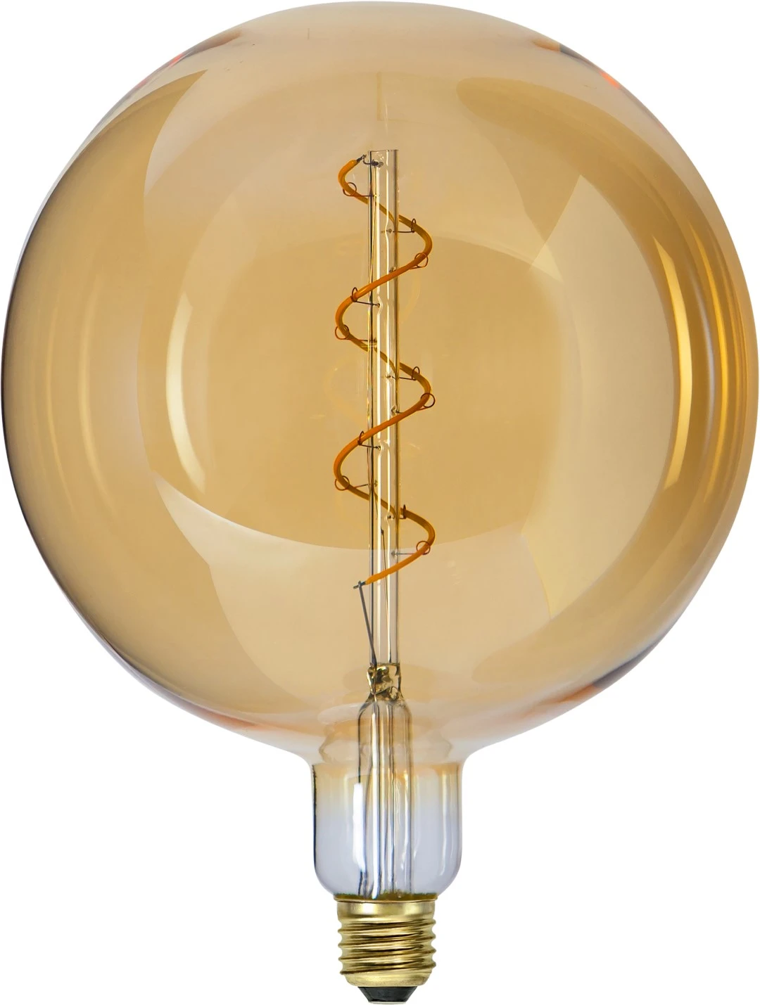Żarówka LED E27 G200 INDUSTRIAL VINTAGE o mocy 2,8W to efektowne dekoracyjne źródło światła o bardzo dużej, kulistej formie. Bardzo ciepła barwa światła 2100K tworzy przytulny klimat inspirowany klasycznymi żarówkami Edison. Dzięki możliwości ściemniania oraz wysokiemu współczynnikowi oddawania barw Ra90 żarówka doskonale sprawdza się w lampach dekoracyjnych i oprawach z odsłoniętym źródłem światła.