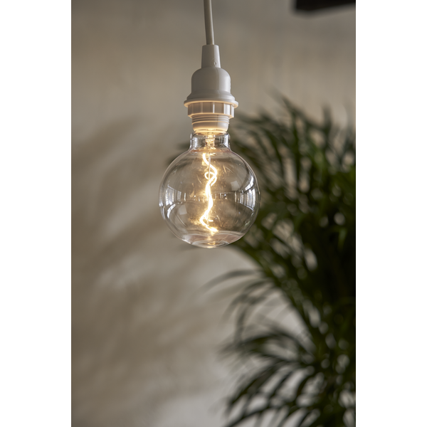 Forma G95 – duża, kulista bańka przyciąga uwagę i stanowi efektowny element dekoracyjny w instalacjach z widocznym źródłem światła.