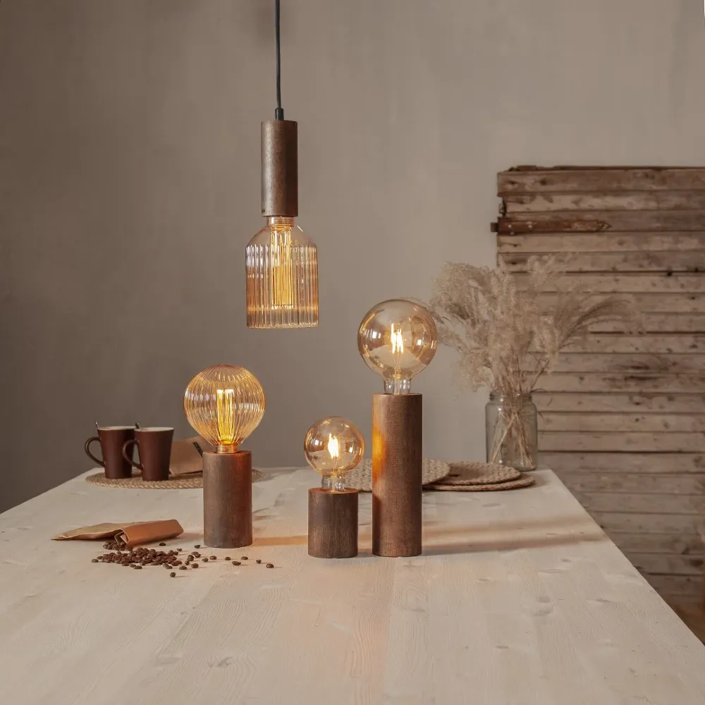 Szkło amber – bursztynowa bańka nadaje żarówce elegancki wygląd i dodatkowo ociepla emitowane światło, tworząc miękki i przyjemny efekt świetlny w pomieszczeniu.