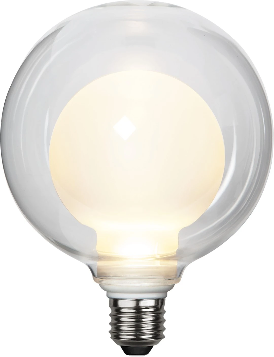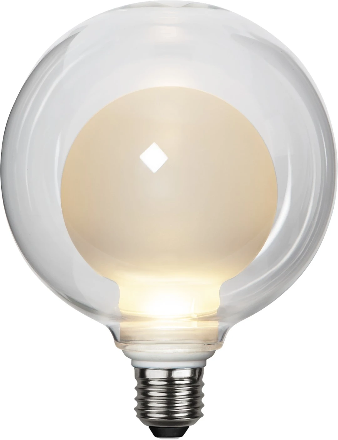 Żarówka LED E27 kulista G125 z przezroczystym szkłem i mlecznym rdzeniem, funkcja 3-stopniowego ściemniania, dekoracyjne źródło światła do wnętrz.