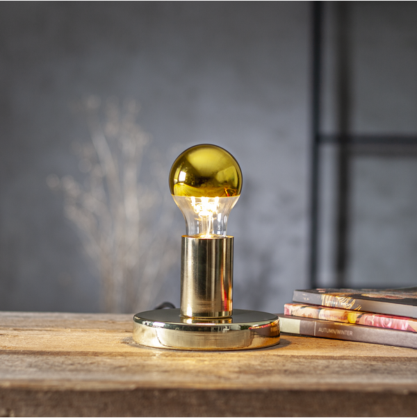 Złote wykończenie TOP COATED – dekoracyjna powłoka w górnej części bańki redukuje efekt olśnienia i podkreśla stylowy wygląd lampy.