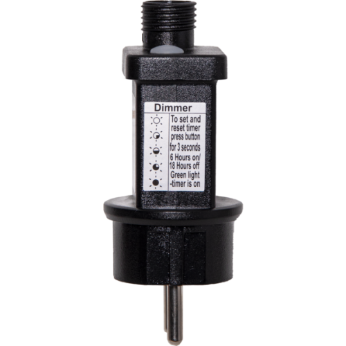 Ściemniacz pozwala na regulację jasności świateł w czterech trybach (100%, 75%, 50%, 25%), co umożliwia dostosowanie intensywności oświetlenia do indywidualnych potrzeb. Timer umożliwia automatyczne włączanie lampek na 6 godzin i ich wyłączanie na 18 godzin, co zapewnia oszczędność energii i wygodę użytkowania.