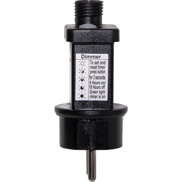 Ściemniacz pozwala na regulację jasności świateł w czterech trybach (100%, 75%, 50%, 25%), co umożliwia dostosowanie intensywności oświetlenia do indywidualnych potrzeb. Timer umożliwia automatyczne włączanie lampek na 6 godzin i ich wyłączanie na 18 godzin, co zapewnia oszczędność energii i wygodę użytkowania.