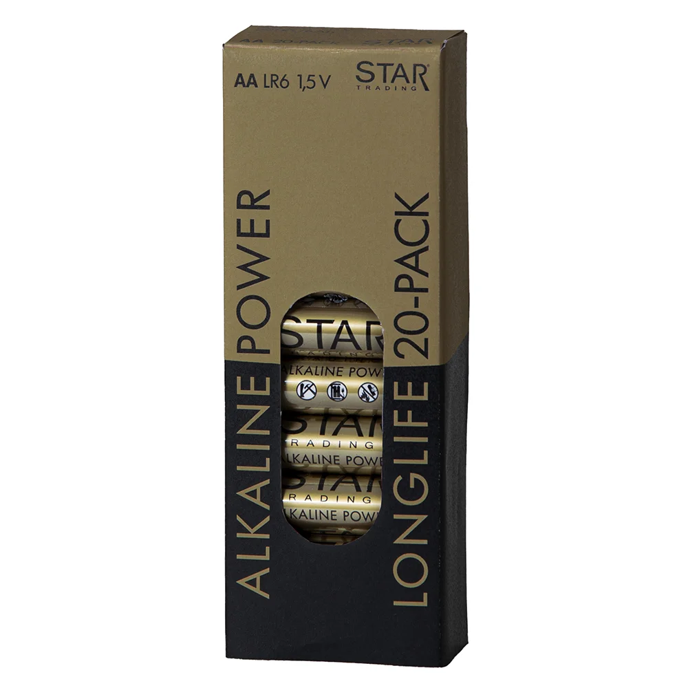 Zestaw 20 szt. baterii typu AA, alkaliczne z wydłużonym czasem pracy.