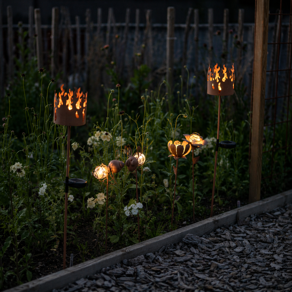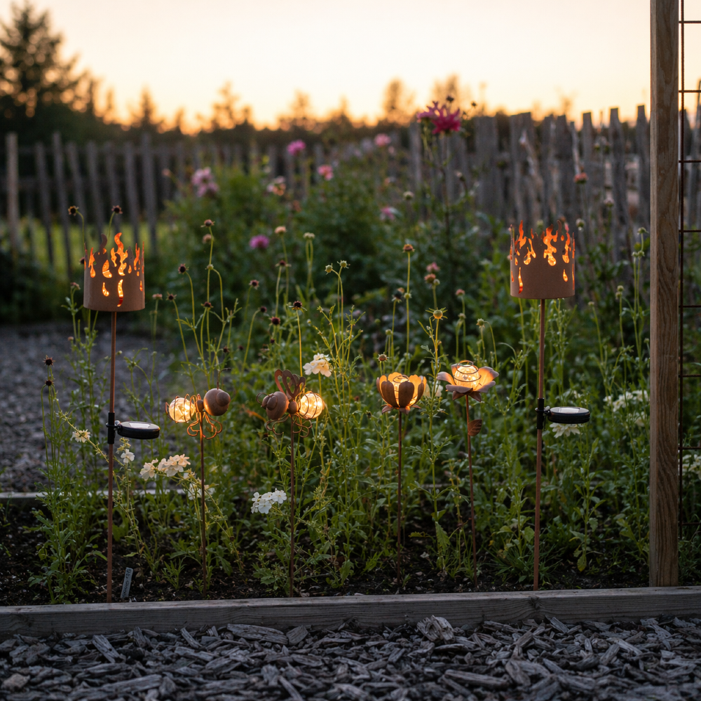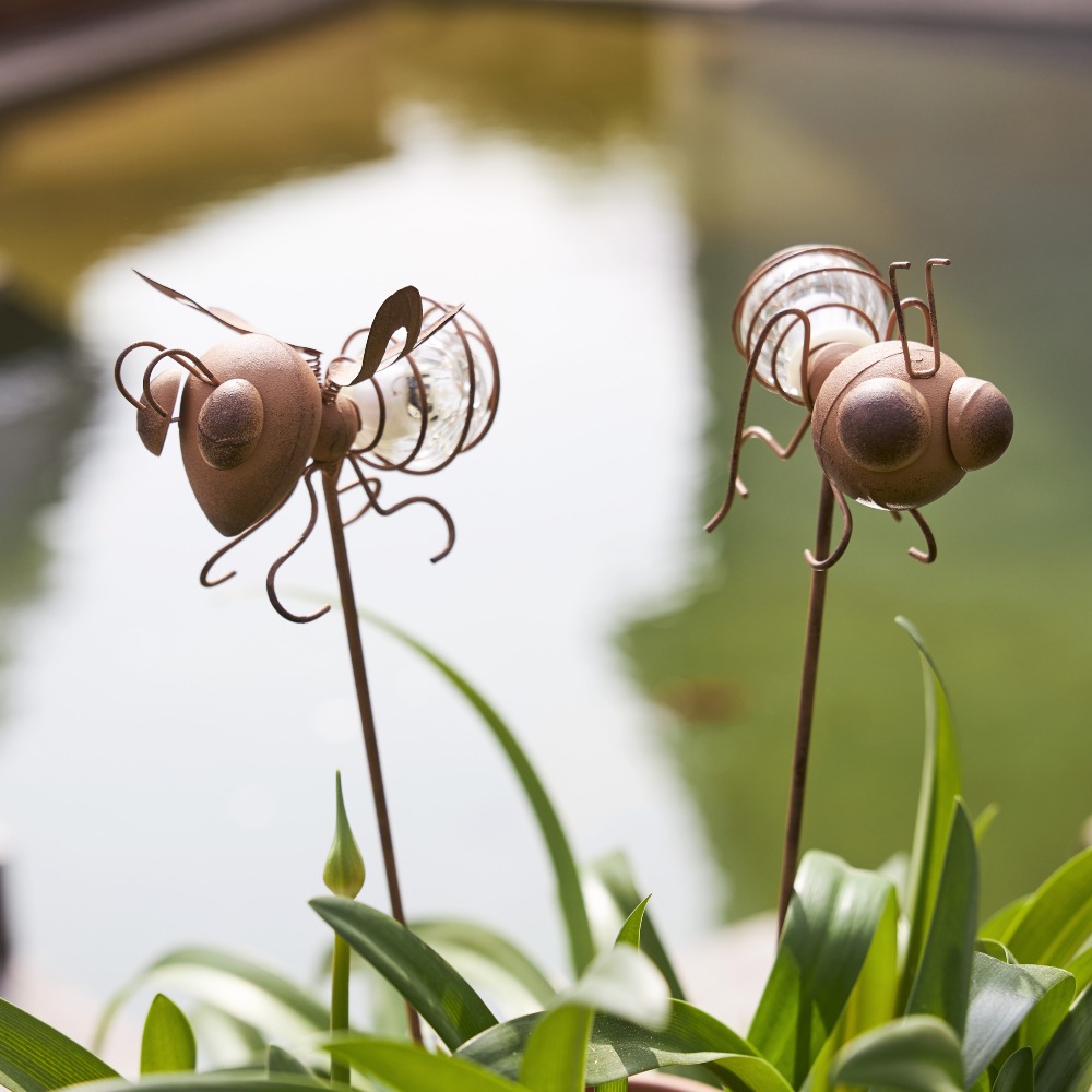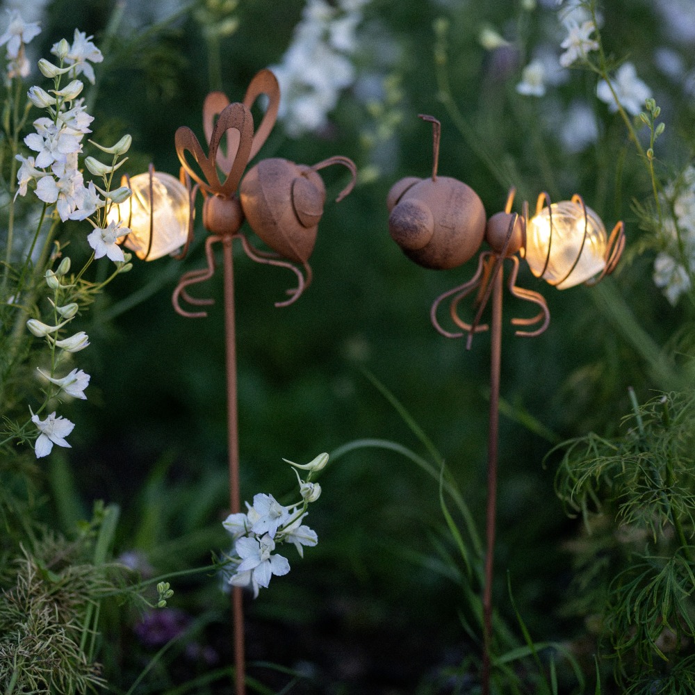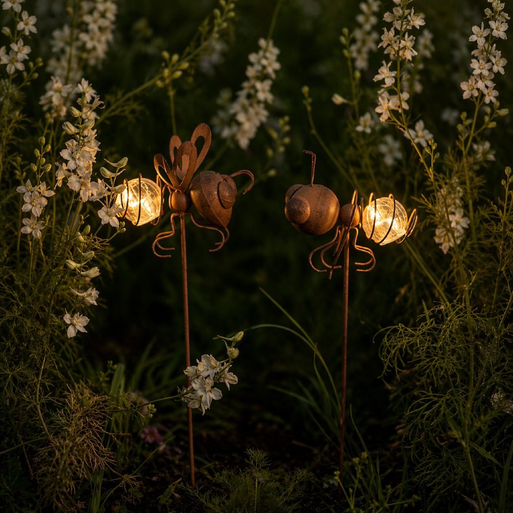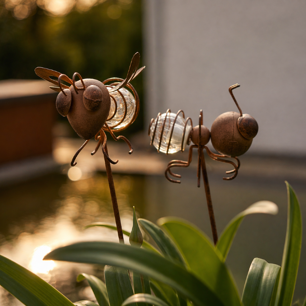 Dodaj urok do swojego ogrodu dzięki dekoracyjnym szpilkom Oxida w rustykalnym stylu! Te wyjątkowe ozdoby w kształcie mrówki i muchy oświetlą Twoją przestrzeń subtelnym blaskiem, tworząc nastrojową atmosferę. Doskonale komponują się z roślinnością, dodając jej oryginalnego akcentu. Możesz je umieścić w rabatach, donicach lub na trawniku.