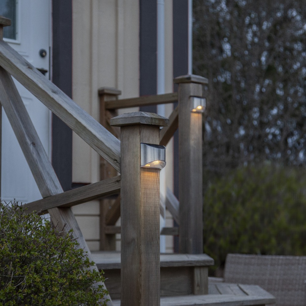 Zestaw 2 kinkietów schodowych solarnych – nowoczesne i energooszczędne oświetlenie schodów, tarasów oraz balustrad. Dzięki zasilaniu energią słoneczną działają bez konieczności podłączania do prądu, oferując wygodne i ekologiczne rozwiązanie. To idealne rozwiązanie dla osób ceniących funkcjonalność, styl i komfort użytkowania w oświetleniu zewnętrznym.