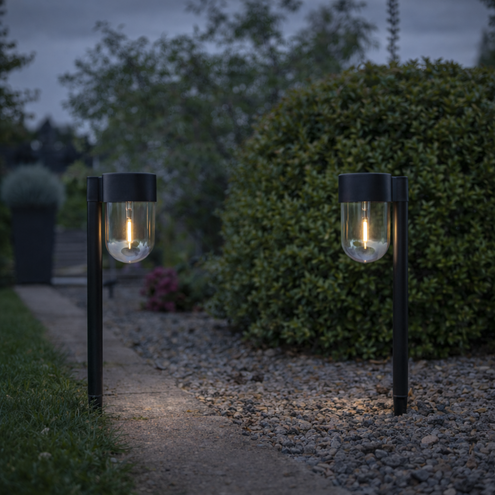 Zestaw 2 nowoczesnych lamp solarnych ogrodowych to doskonały wybór do oświetlenia ścieżek, rabat kwiatowych oraz tarasów. Lampy o wysokości 30 cm charakteryzują się eleganckim designem i wysoką jakością wykonania. Trwałe materiały oraz stabilna sztyca do wbijania w ziemię gwarantują odporność na warunki atmosferyczne. To idealne rozwiązanie dla osób, które cenią funkcjonalność i estetykę w ogrodzie.