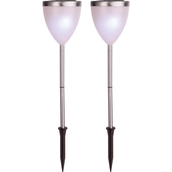 Zestaw 2 nowoczesnych lamp solarnych LED o wysokości 34 cm to doskonały wybór do eleganckiego oświetlenia ogrodu, ścieżek czy tarasu. Ich minimalistyczny design i obudowa ze stali nierdzewnej sprawiają, że świetnie komponują się w każdej przestrzeni zewnętrznej. Dzięki solidnej sztycy do wbicia w ziemię, instalacja lamp jest szybka i wygodna, co czyni je idealnym rozwiązaniem do dekoracyjnego oświetlenia ścieżek, rabat i trawnika.