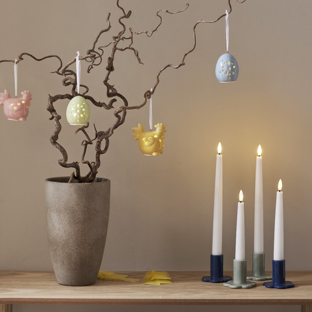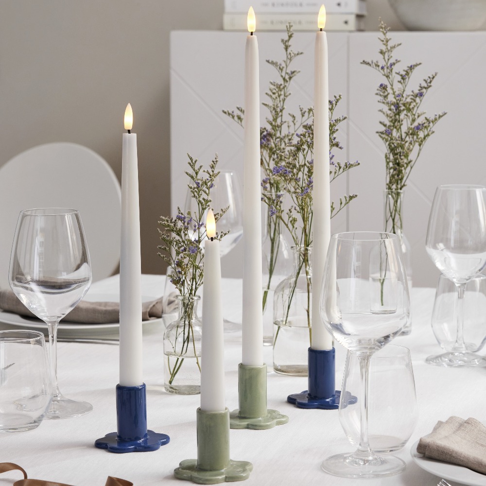 Bloom to stylowy zestaw 2 świeczników, który subtelnie podkreśli charakter każdego wnętrza. Wykonane z porcelany w delikatnym zielonym kolorze, stanowią elegancki dodatek zarówno do klasycznych świec, jak i świec na baterie. Prosta forma i stonowana kolorystyka sprawiają, że świeczniki harmonijnie wpisują się w różne aranżacje – od nowoczesnych po bardziej tradycyjne. To łatwy sposób na stworzenie przytulnej i spójnej dekoracji na stole, komodzie lub parapecie.