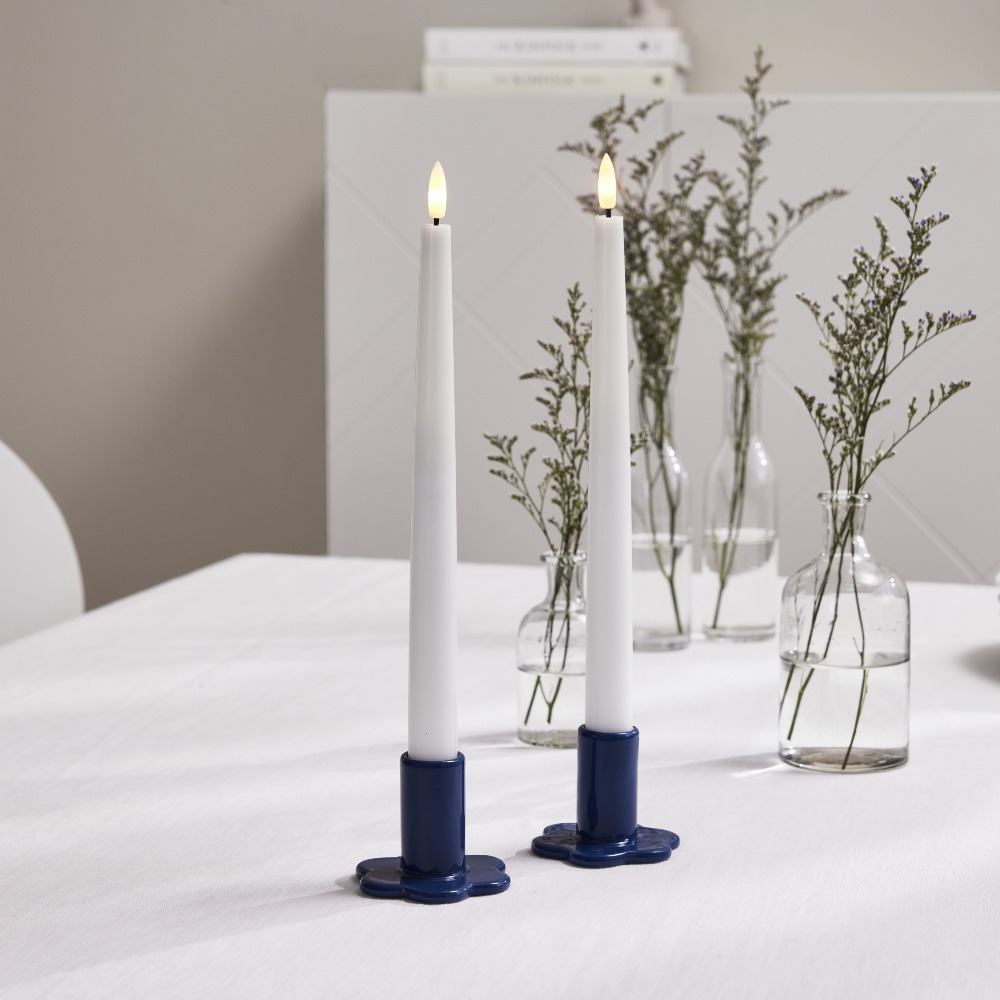 Zestaw 2x porcelanowy świecznik na świecę obiadową niebieski