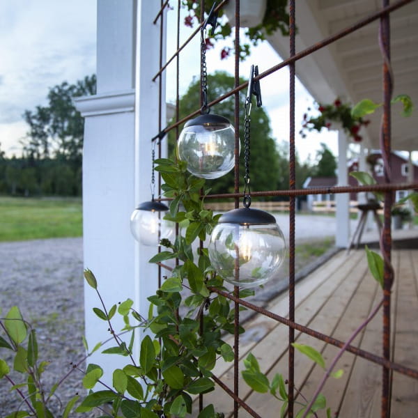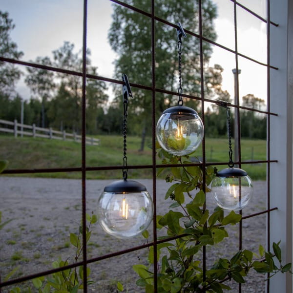 Łatwy montaż w dowolnym miejscu - lampy posiadają łańcuch o długości 13 cm oraz zacisk krokodylkowy, co pozwala na ich szybkie i stabilne zawieszenie na drzewach, pergolach czy balustradach.
