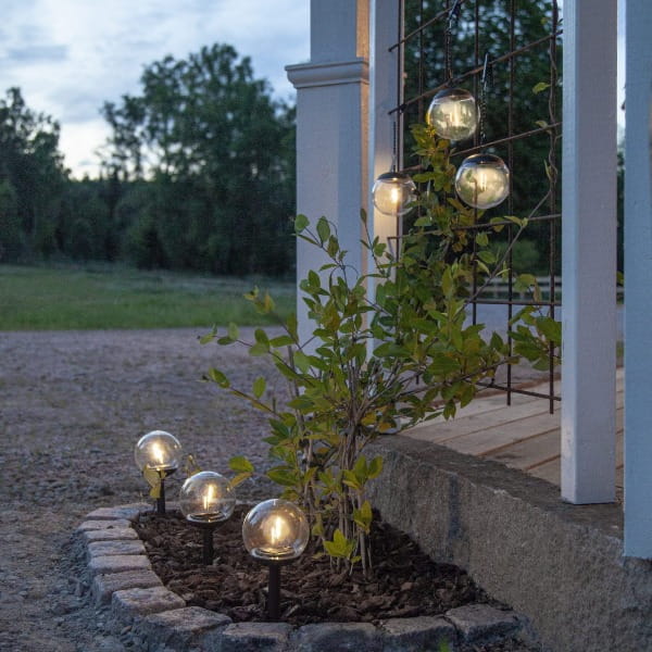 Zestaw 3 wiszących kul solarnych LED z przezroczystymi kloszami to stylowe i energooszczędne oświetlenie dekoracyjne do ogrodu, balkonu lub tarasu. Przezroczyste szkło subtelnie rozprasza ciepłe światło, tworząc wyjątkowy efekt świetlny po zmroku. Każda kula o średnicy 10 cm emituje ciepłe, białe światło, które delikatnie przenika przez przezroczysty klosz, tworząc elegancki blask.