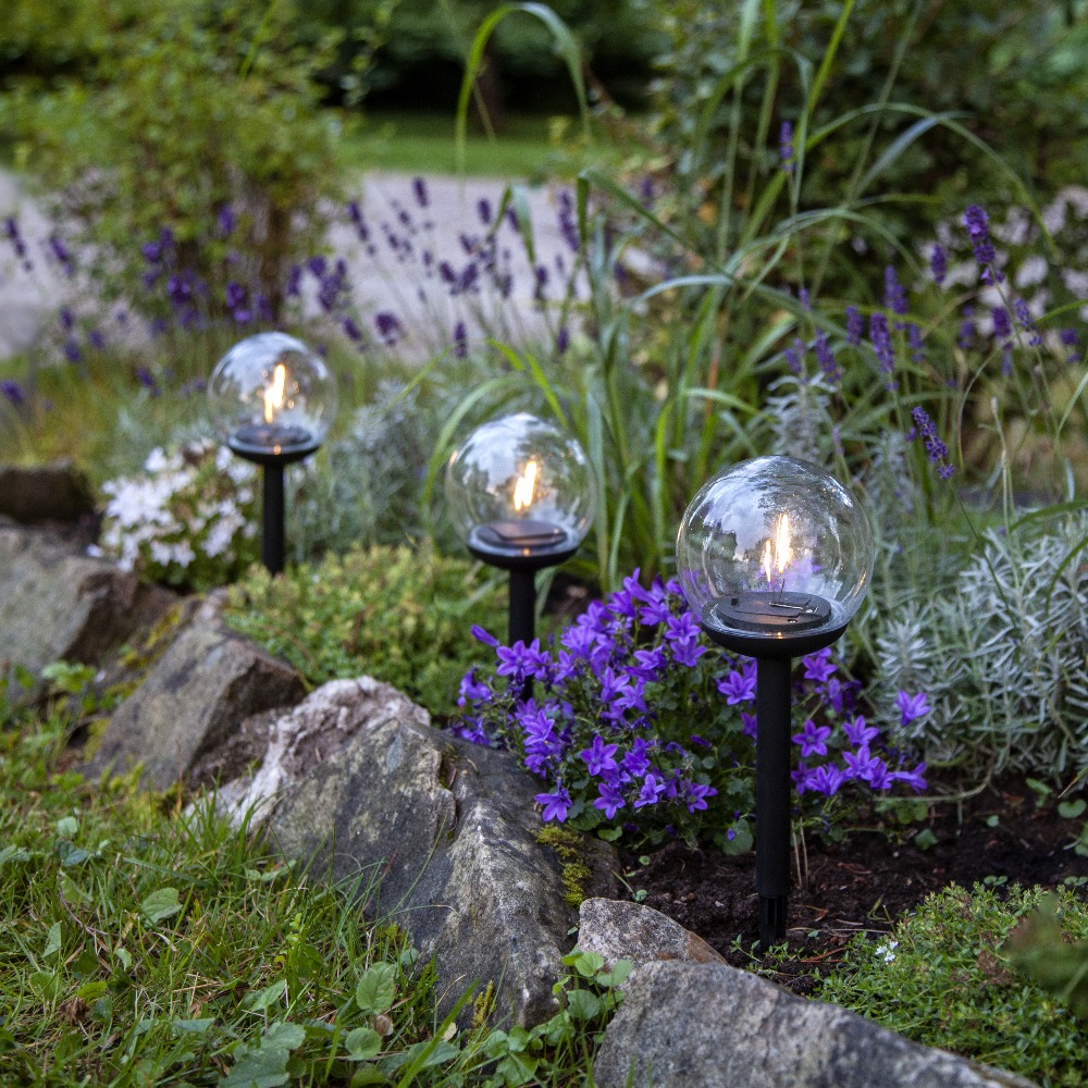 Łatwy montaż w gruncie - dzięki solidnej sztycy do wbicia w ziemię montaż lamp jest szybki i wygodny, co pozwala na swobodne rozmieszczenie ich w dowolnym miejscu ogrodu.