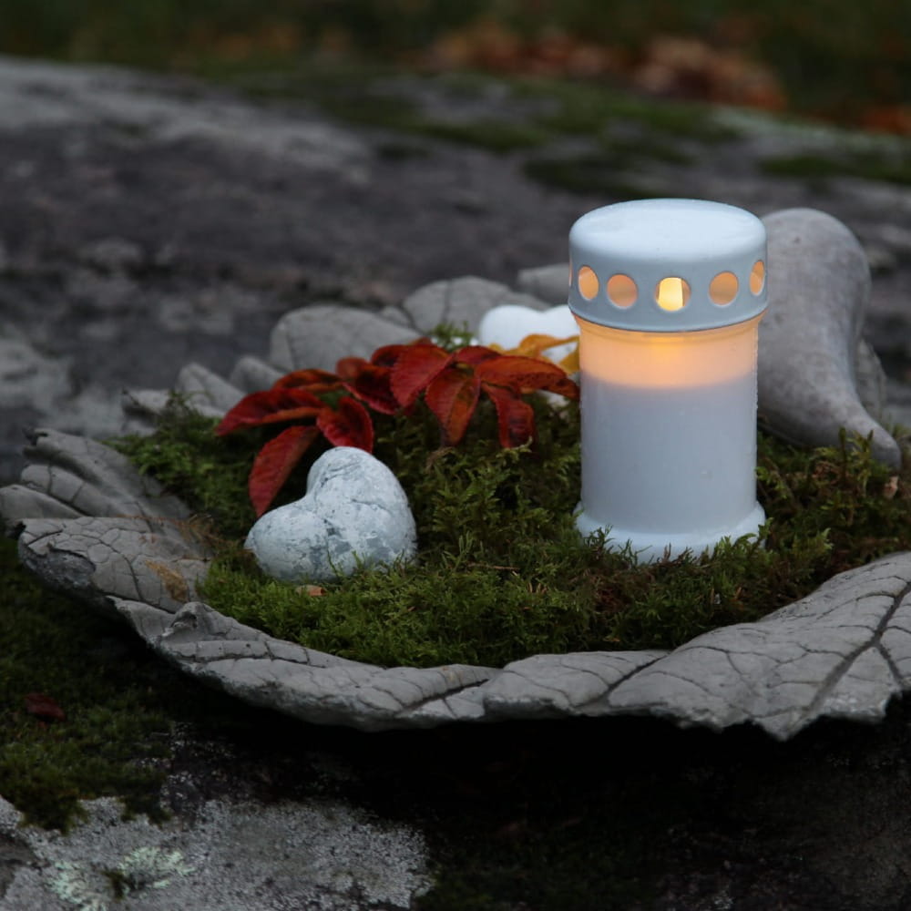 Bezpieczna konstrukcja – brak otwartego ognia i dymu sprawia, że znicz jest odporny na podmuchy wiatru i bezpieczny w użytkowaniu przez cały rok.